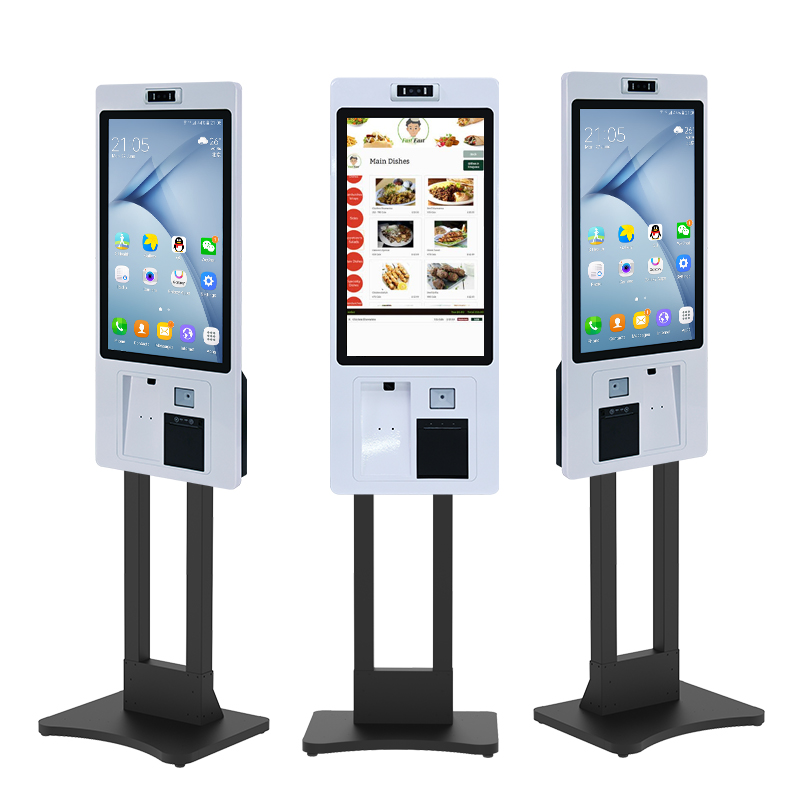 Robust & ADA-Compliant Design: The kiosk’s slim white enclosure is not only aesthetically pleasing but also ruggedized for commercial environments. The floor-standing pedestal base ensures stability and is designed to meet ADA accessibility guidelines for screen height and reach.