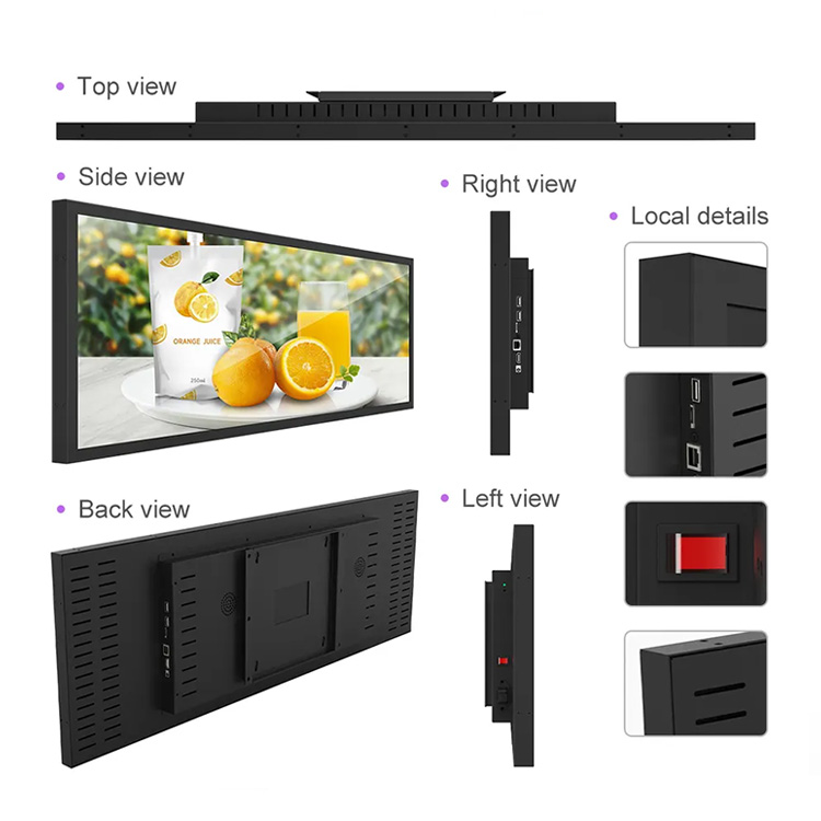 Transform your retail environment with our Custom Strip Screen LCD Advertising Display. Specifically engineered for modern supermarket shelving and retail end-caps, these ultra-wide “stretched” displays replace traditional paper labels with dynamic, high-definition digital content